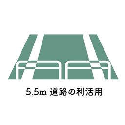 5.5m道路とは北栄、猫実、当代島地区の一部の道路です。地盤沈下解消のための北部土地改良事業で整備された水路が、その後、暗渠(あんきょ)化されました。その名の通り道幅は5.5mであり、農地用水路の上に蓋をしてアスファルト舗装をかぶせた構造となっているため重量制限があり、車止めにより車両の通行を制限しています。5.5m道路ではどんなことができるでしょうか。