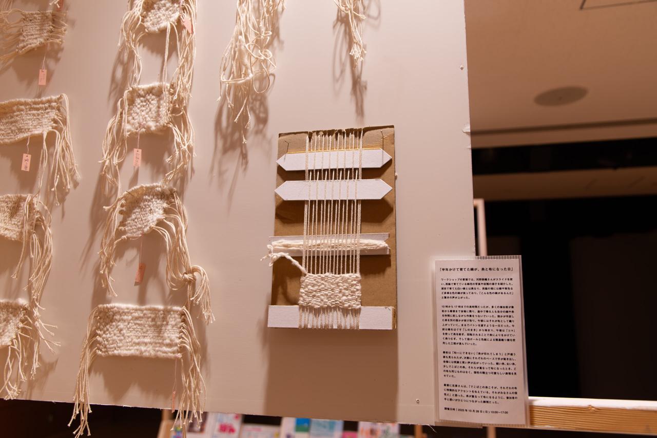 綿花の布や種に実際に触れられるコーナーでは、「こんなに軽いんですね」「やわらかい」といった声が聞かれました。また、市内で参加者が育てた綿花の種を来場者にプレゼントする取り組みも行い、「家で育ててみます」と受け取る方が多くいらっしゃいました。プロジェクトの営みが、それぞれの暮らしへと持ち帰られていく様子が印象的でした。