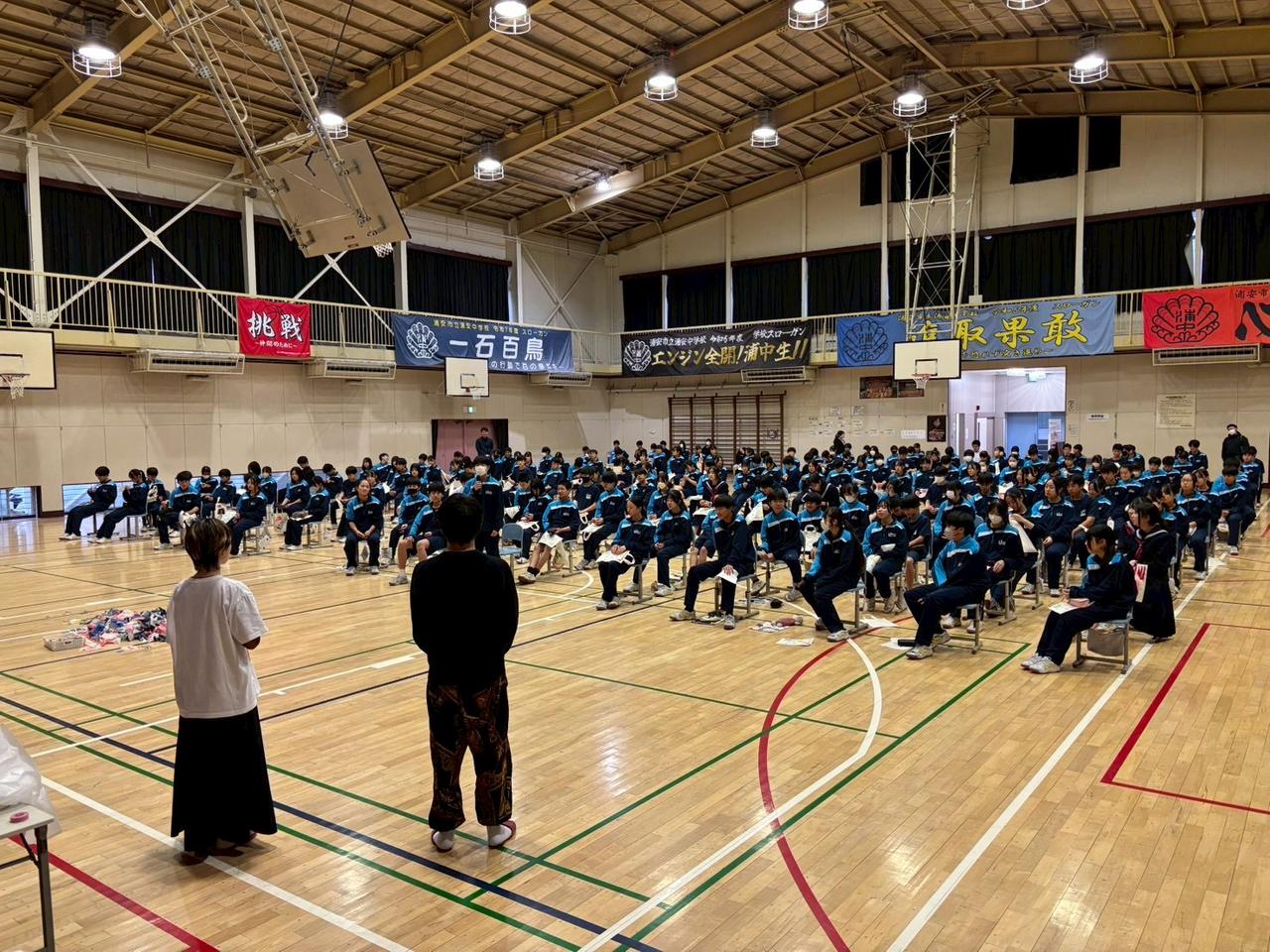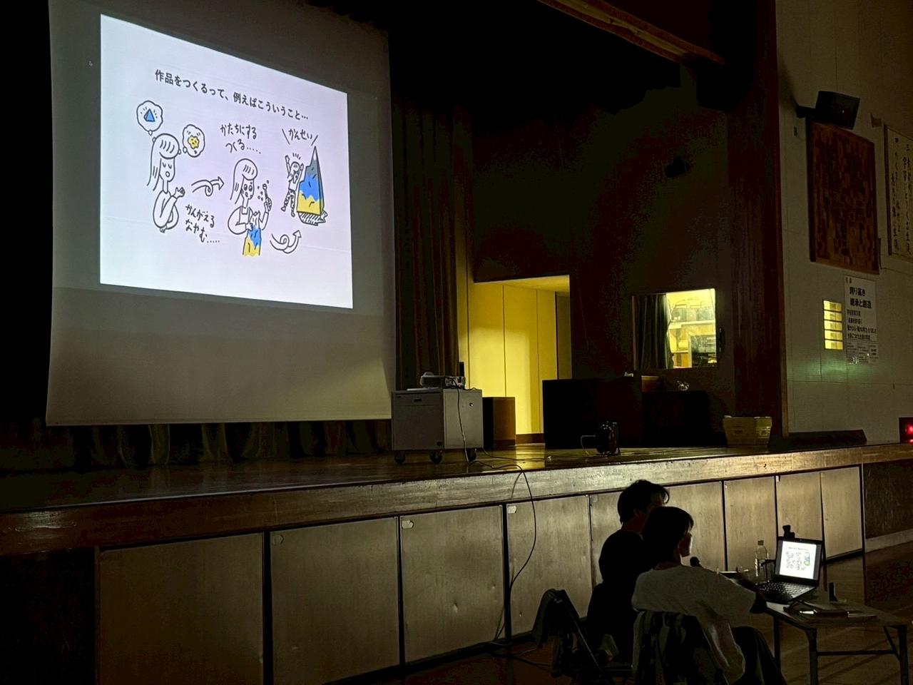 11月27日に、浦安藝大のキャリア教育第2回を実施しました。今回は、ミヤタユキ先生(ROKUROKURIN合同会社代表/アーティスト/コーディネーター)と布下翔碁先生(アーティスト・浦安藝大事務局長)が浦安中学校を訪れ、講演とワークショップを行いました。前半は、それぞれのこれまでの活動についての講演、後半はミヤタ先生によるワークショップです。