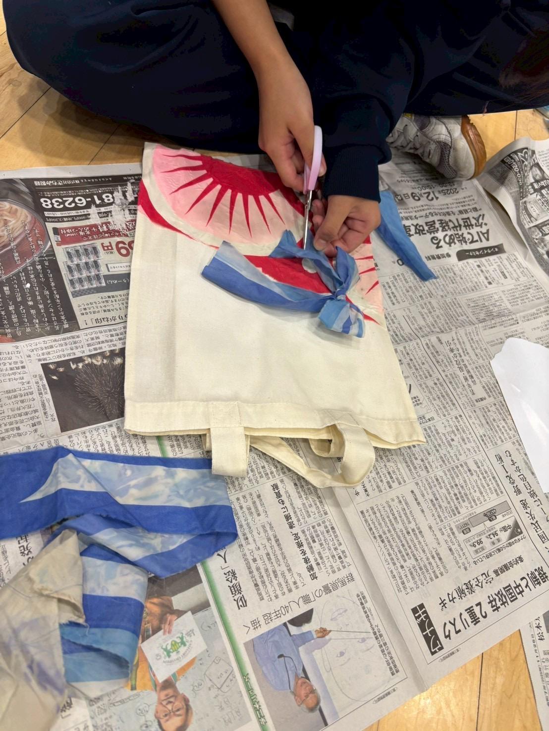 後半のワークショップでは、制作が始まった瞬間から生徒たちの集中力と創造性が一気に高まり、それぞれが全力で楽しみながら、思い思いのトートバッグをつくり上げていきました。