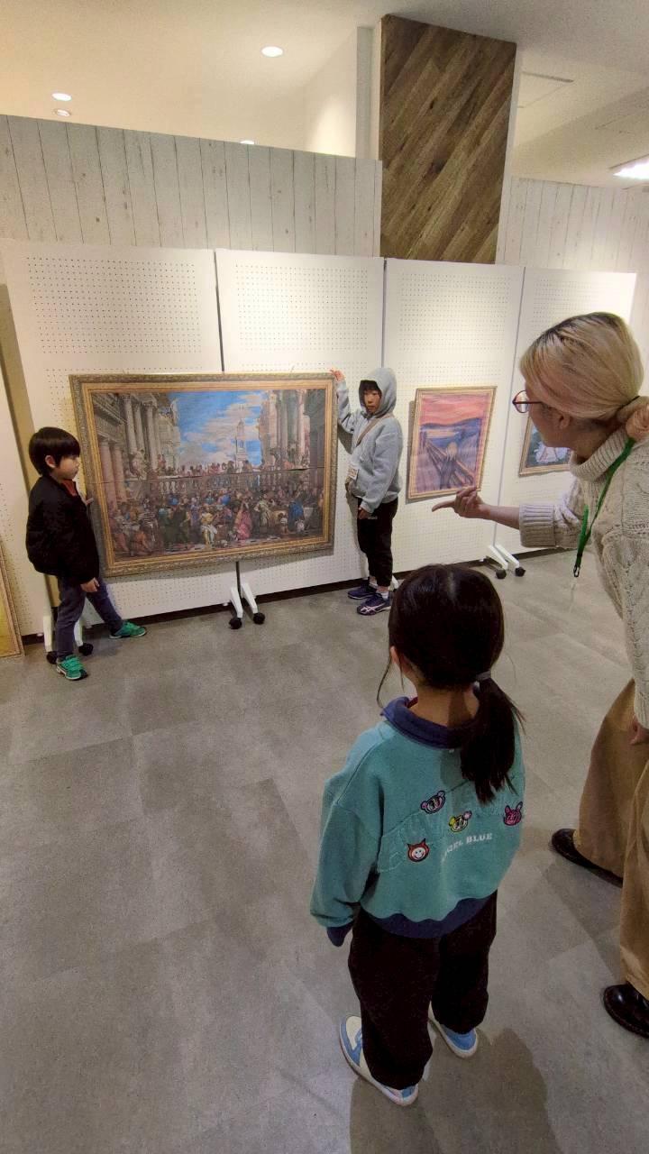 展示作業の後には、各チームごとに「工夫したところ」や「注目してほしいポイント」を発表。そのポイントを意識しながら鑑賞することで、ただ“見る”だけではない、展示の背景にある意図や考えにも目を向ける時間となりました。
