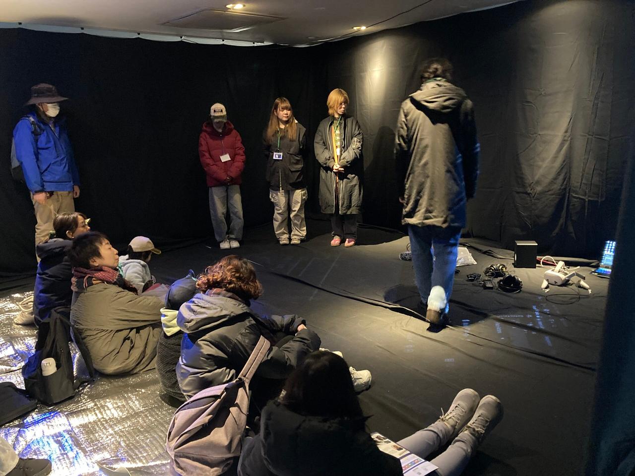 ゴーグルを装着すると、自分たちが録音した音が視覚化され、音と映像に包まれる体験が始まりました。