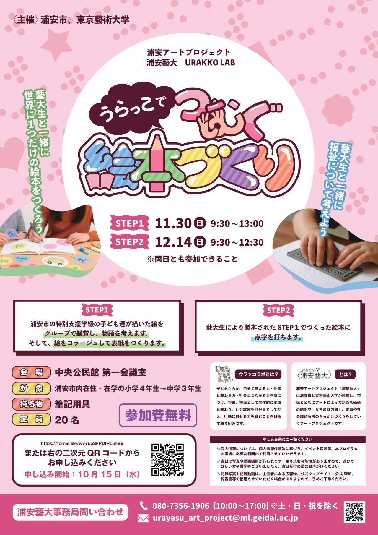 「うらっこでつむぐ絵本づくり」は、障がいの有無に関わらず、絵本における大事な部分をそれぞれの子ども達が担うことにより、浦安のこどもたち=「うらっこ」達の繋がりを感じられるワークショップです。